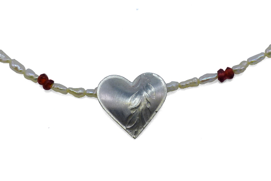 Perlenkette mit Granat Herz aus Silber